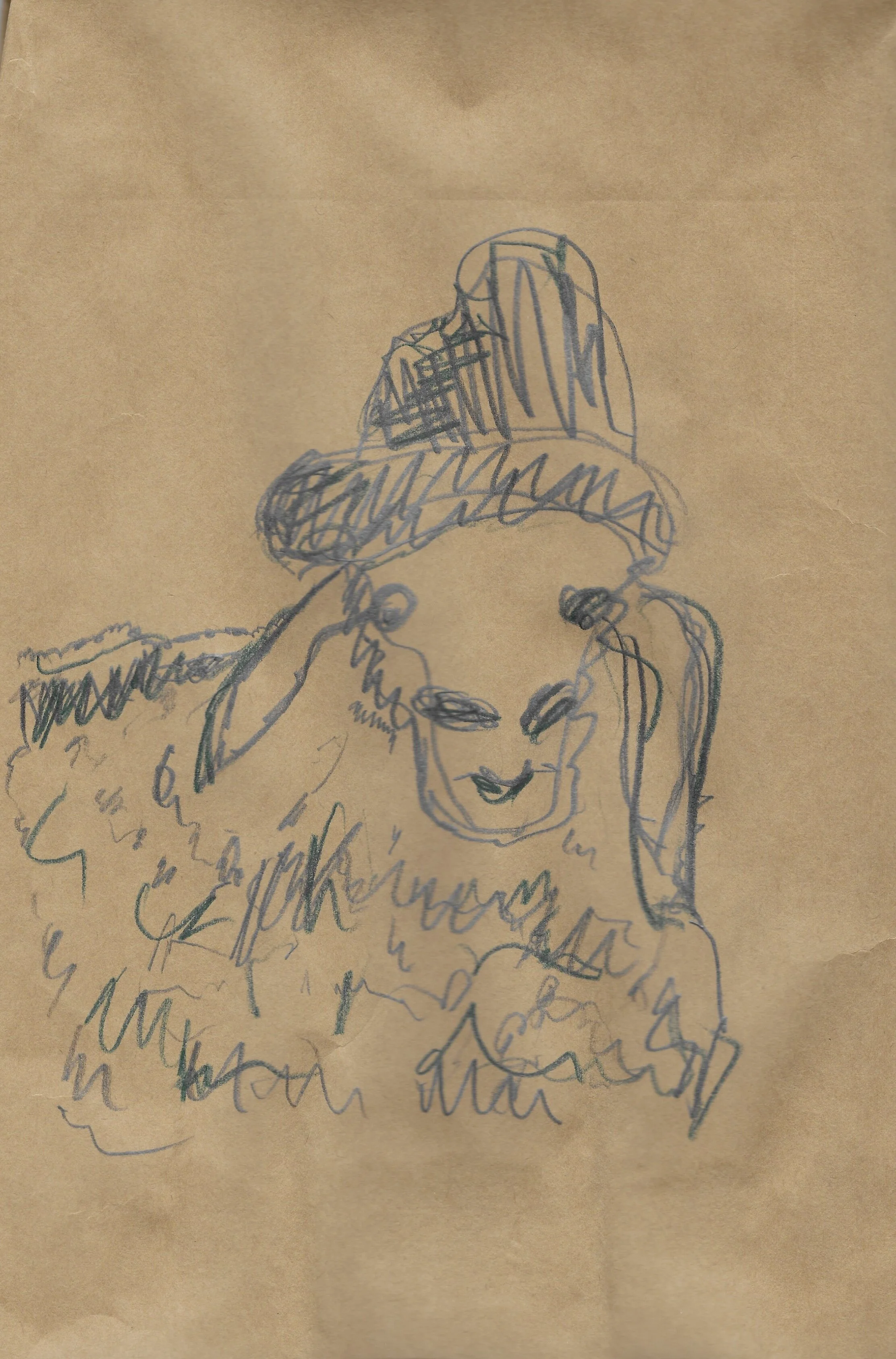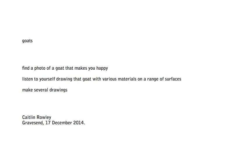 whilst preparing for the performance of goats by caitlin rowley, i had a very clear idea that the goat i would find to draw ‘that makes me happy’ would be wearing a hat. with thanks to the source of this goat - the facebook page ‘goats wearing hats’. the goats were drawn with pencils, textas, charcoal and whiteout on baking paper, styrofoam, an brown paper bag and a piece of paper i had used for micro 1 by takehisa kosugi.