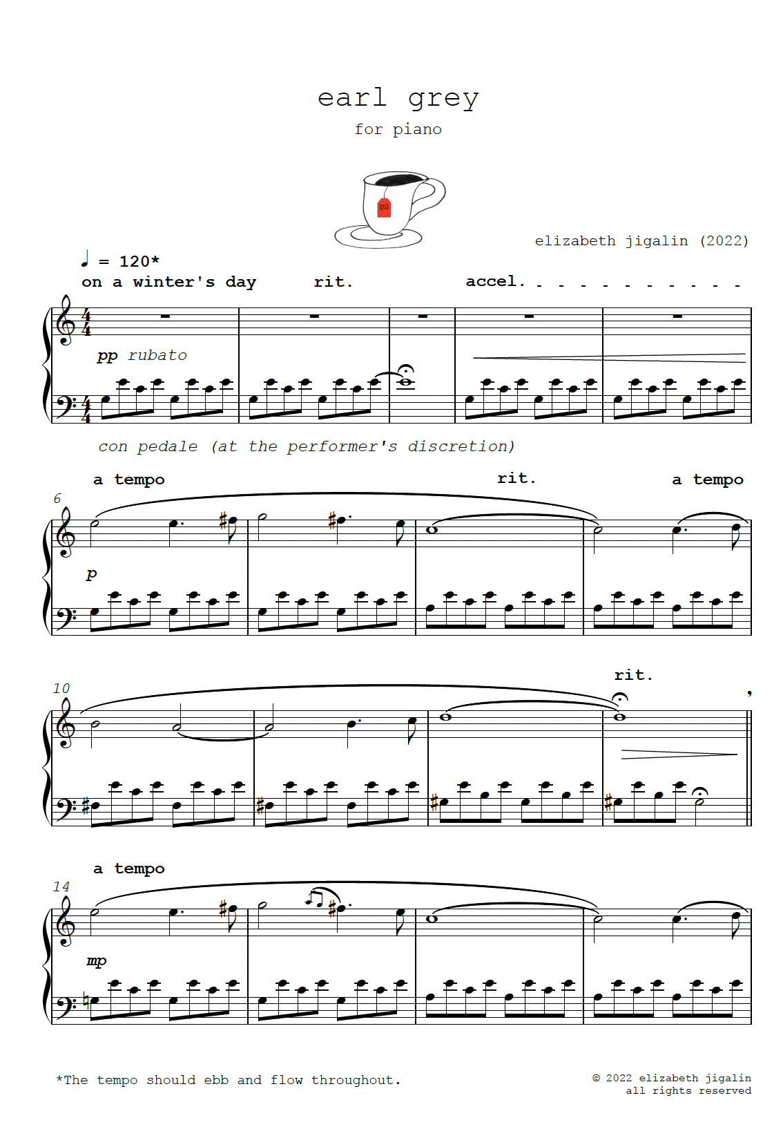 june 1st 2022 was a particularly chilly winter’s day in Sydney. looking out at the wild weather and with a cup of tea on hand, I composed a suite of piano pieces inspired by tea. a few days earlier, beryl shereshewsky posted a call out asking for how people around the world have their tea and so I liked the idea of creating a musical response to this proposition. I also liked the idea of composing some piano pieces that were at an easy level for anyone to play! 😊